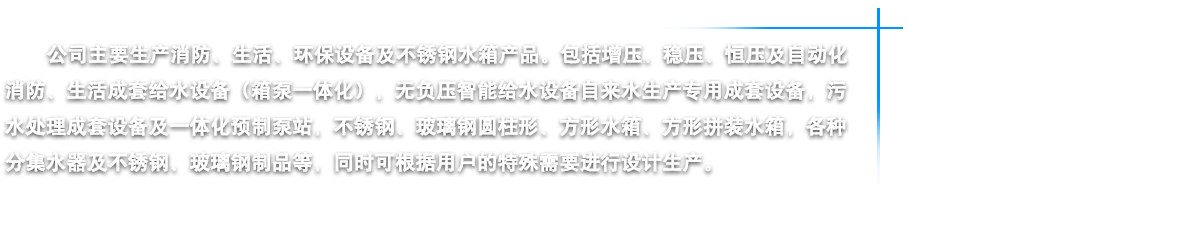 公司專業(yè)生產(chǎn)定做消防、生活智能箱泵一體化、一體化預(yù)制泵站、一體機(jī)提升泵站、各種規(guī)格不銹鋼水箱等